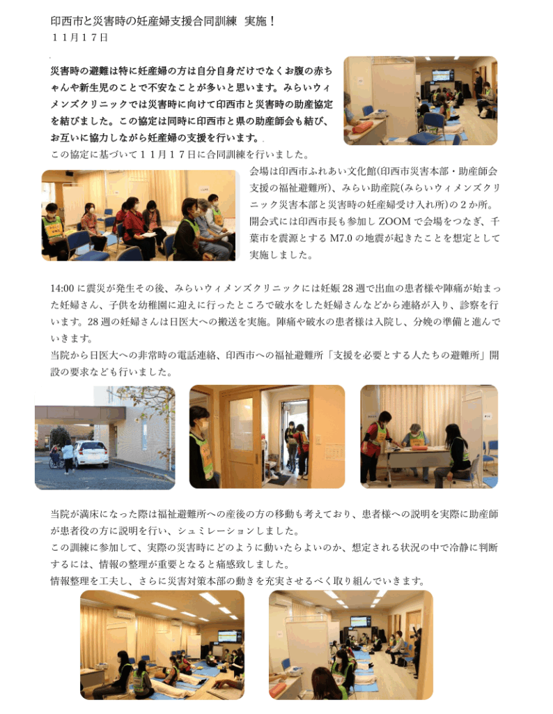 11/17印西市と災害時の妊産婦支援合同訓練を実施2025/11/19 投稿ナビゲーション 前 前の投稿: 11/19(水)診察について【駅前クリニック】12/13(土)パパママクラス開催♪次ページへ 次の投稿: